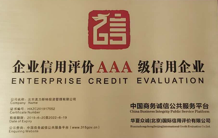 企业信用评价AAA级信用企业